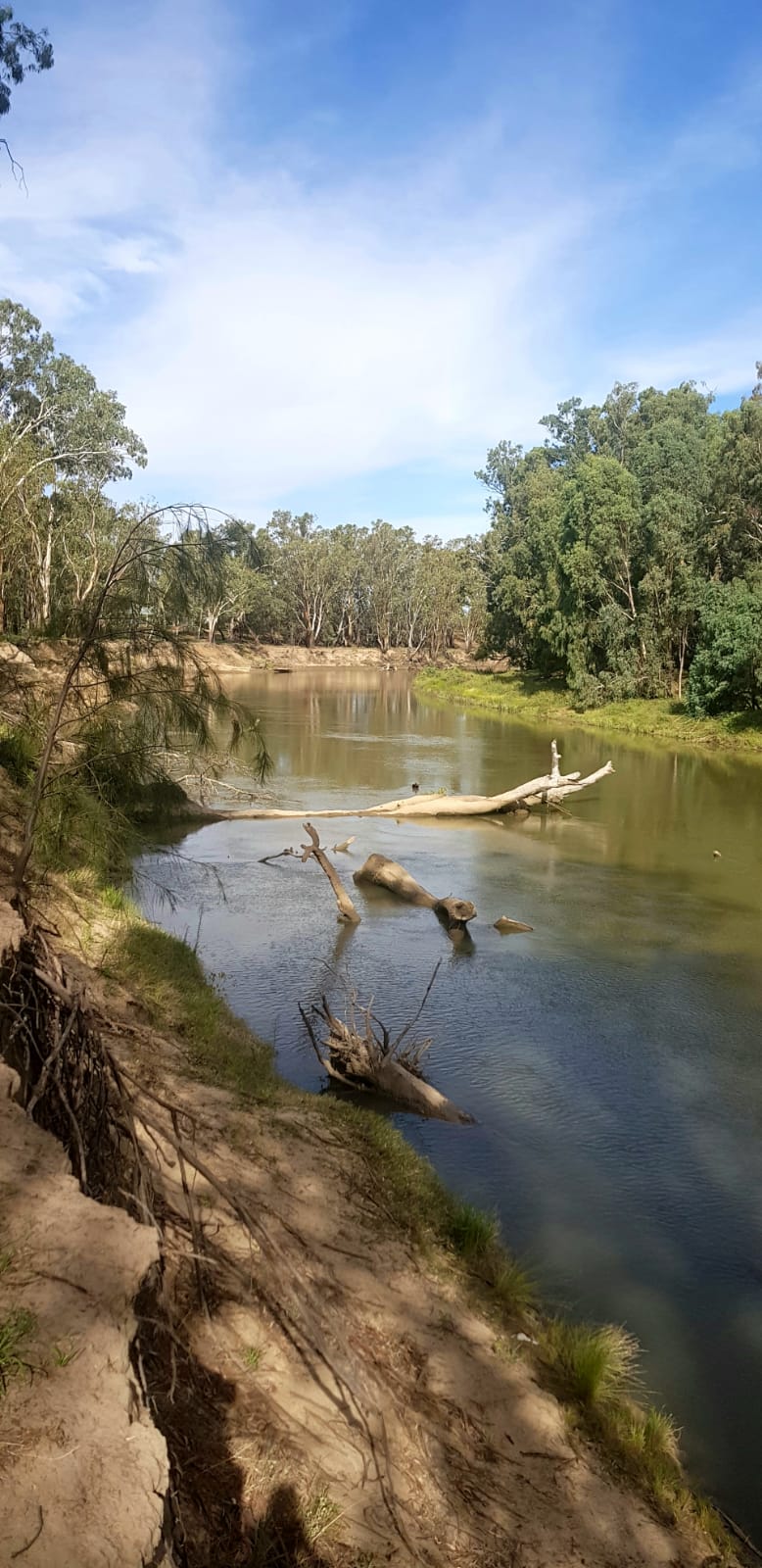 There are some country towns that seem to be iconic in Australia. I’ve always considered Wagga Wagga to be one. It is the home of Aussie cricket legends Mark Taylor and Geoff Lawson. WW looked all of the country town it is. Wide set streets, dusty, dry and flat. Dry flat wickets too I imagine – good for making a name for oneself at the top of the order before leaving for Sydney and test stardom no doubt. We passed on through and pulled into the campground at Darlington Point. A small, attractive service town and our first sight of the Murrumbidgee River. The Murrumbidgee is Australia’s second largest river winding 1485 kms from the Snowy Mountains to its confluence with the Murray River. Darlington Point is in the Riverina District of western NSW, population about 1,000. And an Italian restaurant. Is there an Aussie town without an Italian Restaurant? We had passed through areas of fruit orchards then the major wildlife park attraction www.altinawildlife.com/ before arriving. We camped almost alone alongside the river. The sounds of cattle lowing kept us awake at night but there is nothing better than setting up camp under Red River Gums and native birdlife. Dawn broke on a beautiful warm day and we pressed on towards Victoria.