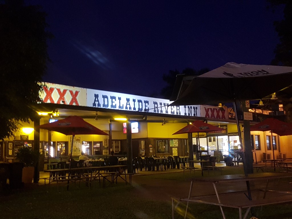 Adelaide River Roadhouse campground is a small camp of about 25 sites with lovely gum trees shading each site. It had a very pleasant pool kept at a temperature that was a mix between refreshing and just right given the sun was blazing and the temperature nudging the early thirties. We had a great meal in the tavern accompanied by a long conversation with a real life Crocodile Dundee. Ryan, a pretty rough diamond it must be said, had taken a photo for Scout and then proceeded to give us his story. He had come up from NSW in his early twenties and had nagged the local buffalo hunters to give him a job. He now had a contract to provide meat for the local crocodile farms which involved eight months each year out in the wilderness hunting wild water buffalo, camels and horses. This red meat is very lean he told us and was sold to the croc farms. This diet means the crocodiles grow quickly and produce good leather. āI really work for Louis Vuittonā he said ā As they own all the farms.ā He was happy to talk and told us stories which won’t be repeated in this piece but were very interesting to say the least. He called himself a petmeater and I’m willing to bet no reader here has met one before. As is always the case these unlikely people are never as basic as first glance and he was also running a small trucking company with his wife. I think we caught him after returning from a long stint outdoors and several beers in. It made for an interesting night though.