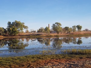 The Cumberland Mine, licensed in 1872, was the largest gold mine in the region at the time and the township of Cumberland formed around it. As with most such enterprises it withered and all that remains is the large brick chimney that dispersed smoke from the crushers and lifters and the dam – now a billabong – which form the backdrop to the popular council owned camping area where we stayed for the night. The nature billabong now teems with birdlife including data, green pygmy geese, various duck varieties, swamphens, egrets and even a couple of pelicans. The trees around are populated with multitudes of finches, bower birds, Australian magpies and magpie larks. Near our campsite a large sand goanna rustled through the dry grass. I am thinking of becoming a bird watcher. A twitcher. Seems like the life to me.