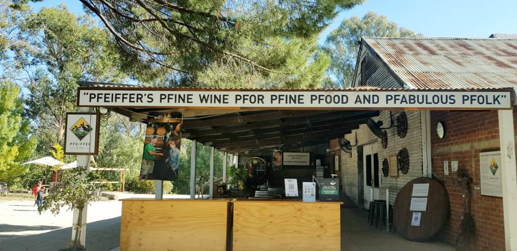 Our wine trek continued just north of the King Valley in the delightful little town of Rutherglen. We are now nearly 300 kms north of Melbourne and 50 kms from the NSW border. Rutherglen is a very attractive town of around 2,500 people and over 20 wineries. The campground is 100 metres from the town centre and sits beside a very pretty little manmade wetlands supporting a variety of birdlife from wood ducks, Australian moorhens, white herons and darters. We chose Pfeiffers and De Bortolis for winetastings. While De Bortolis is on the edge of town Pfeiffers is near the end of the Rail Trail bike path some 9 kms out of town and on a warm sunny day we needed a drink on arrival. There were 17 wines on offer for the tasting but thinking bikes, riding, falling off and about ten kms back to the CP we went with seven. The thinking being this may only lead to wobbling. Rutherglen is famous for its fortified wines and Pfeiffers produce ports, topaque and muscats along with the usual chardonnay, shiraz and merlot wines along with the less well known marsanne, durif and tempranillo varietels. Chris Pfeiffer started Pfeiffer wines in 1984 following many years as chief fortified winemaker at Lindemans. His daughter Jen is now head winemaker and 2009 winner of the Wine Societies Young Winemaker of the year.We had a very educational 20 minutes talking to Chris who gave us his views on wines, wineries and France (not very complimentary). We now know that French winemakers really only come to Australia because the French Government credits them with overseas experience which opens the door to subsidised loans. Probably not wholly true but that seems to be his experience. In a sign of the times for modern wine promotion for smaller wineries almost all Pfeiffer’s wine is sold at cellar door, to local restaurants, through their wine club or increasingly through Naked Wines. Lets not forget that almost all the wineries here also provide great dining so if the food and wine trail is your thing …. get here.