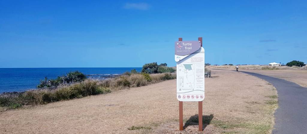 Bargara is really a seaside suburb ten kms from Bundaberg. It is part of a coastal area growing with new builds. One of the earlier beach developments Bargara’s coast road is lined with three and four story apartment blocks overlooking the rocky foreshore. There are some beachy areas, even the Bundaberg Surf Club. A major attraction is the Mon Repos Turtle Centre a twenty minute walk from the campground. Mon Repos beach is a major green turtle nesting area from November to March. The bike path system is great and it is possible to bike up 30 kms along the coastline on concrete paths often under the shade of casuarinas and paper bark forest. We did a 25 kms return ride for lunch at Burnett Heads in the midday sun.Mad Dogs and Englishmen really because I am regretting it today.