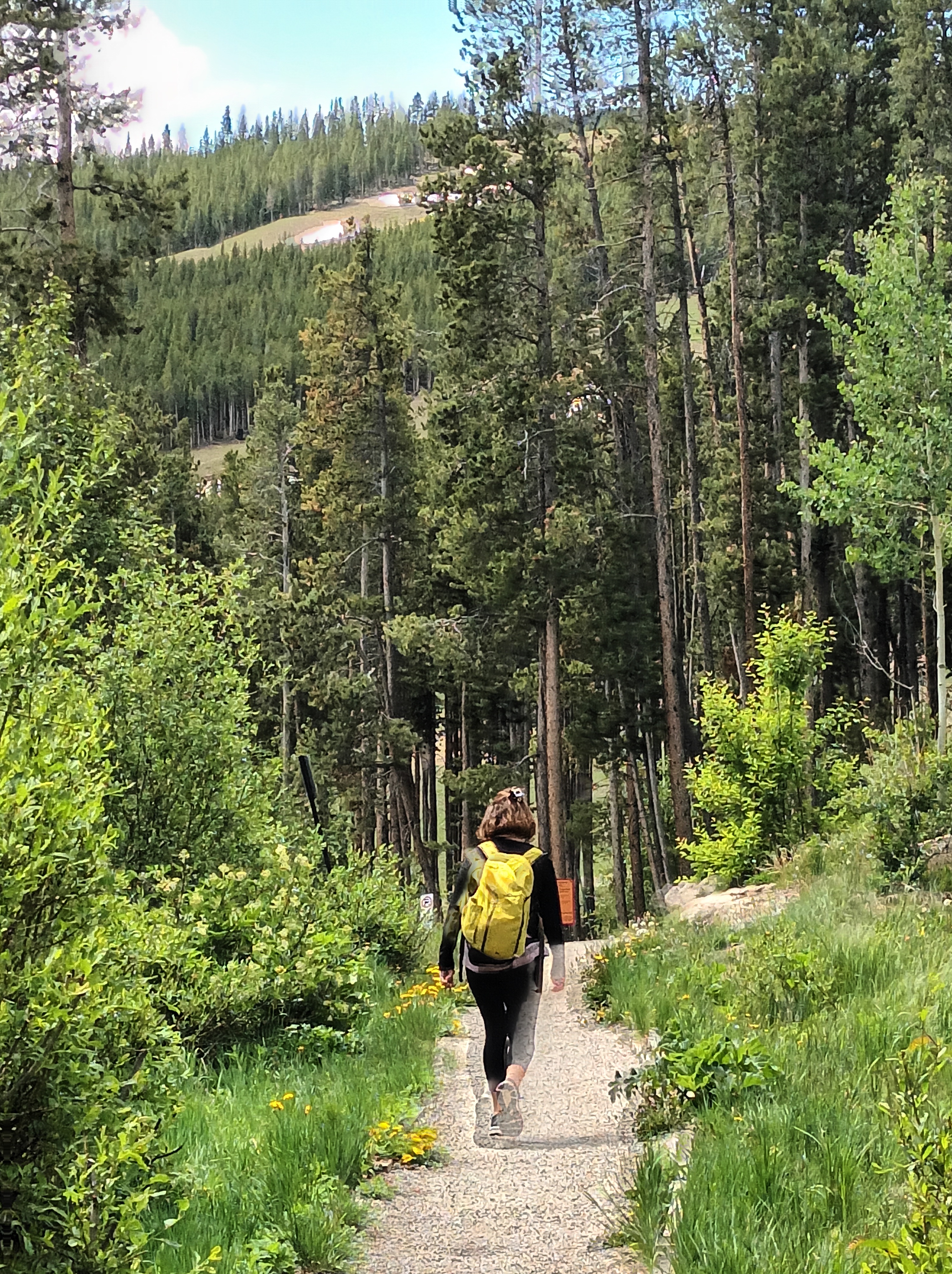 A small town built on prospecting has grown into a popular skifield with the building of numerous condominiums. It is small beer though besides the internationally renowned and visited nearby ski resorts of Breckenridge, Vail and Aspen. We spent a day walking the summer trails of Breckenridge. The gondola transports summer visitors to the ski field resorts, now devoid of snow and the chairlifts offer hikers and mountain bikers transport to the trails and meadows higher up the mountain slopes. No doubt this is overwhelmed in winter. In early summer it is still popular with people enjoying the glorious views and activities which are so easily accessible.