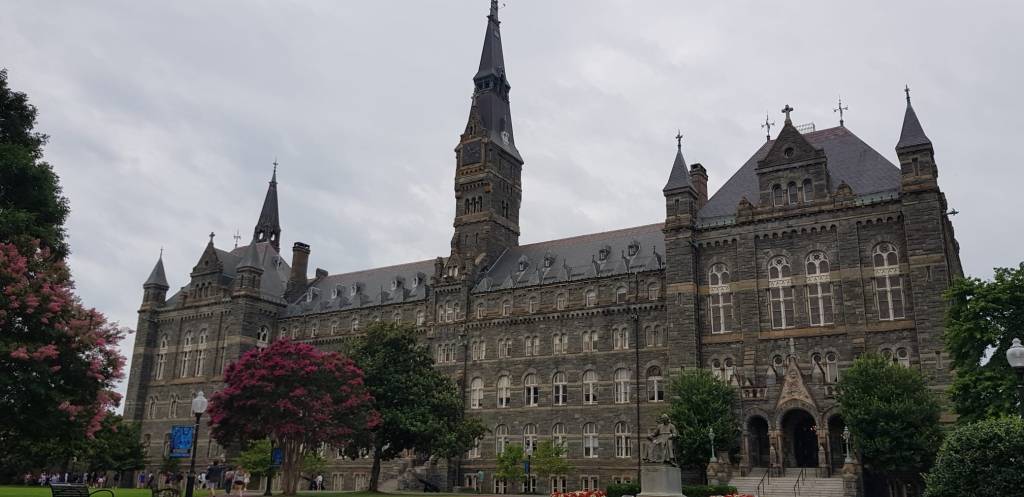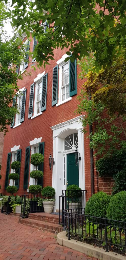 We stayed in the Hotel Sonesta (recommended) in Dupont Circle (recommended) a half hour walk and an easy metro ride to downtown and close to Georgetown and embassy row. Georgetown is the leafy high-end suburb of red cobbled sidewalks and beautiful row houses. Home to the wealthy and many famous politicians over the years it is also a favoured restaurant and shopping district alongside the river. We walked its shady streets and visited the breathtaking Georgetown University stopping only to admire the redbrick former home of John and Jackie Kennedy and a host of other houses where extraordinary historic events occurred. We could have been in Hampstead, London. In fact downtown DC could easily have been a melding of London and Paris (see Pierre LEnfant – Engineer).