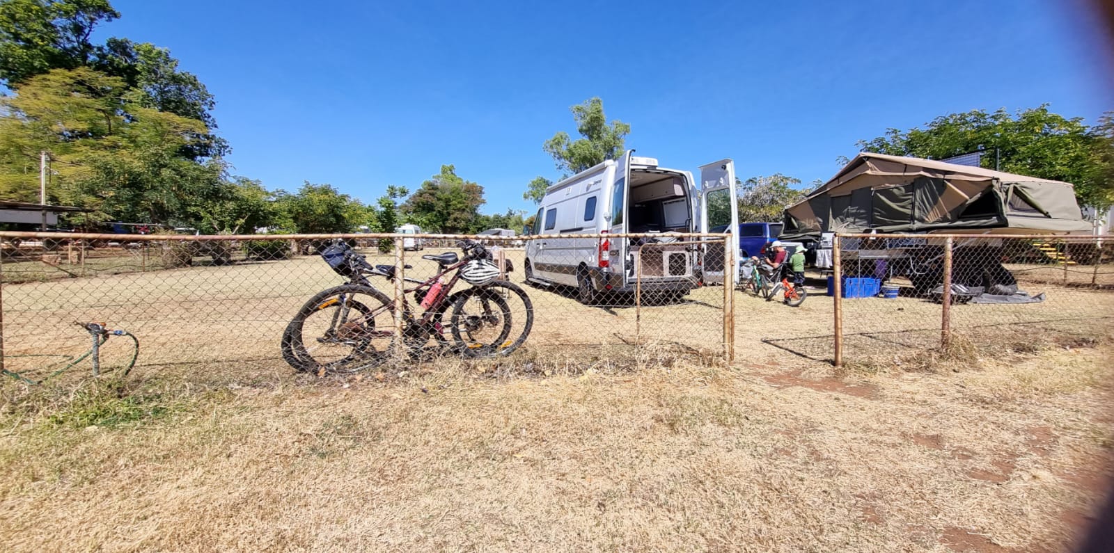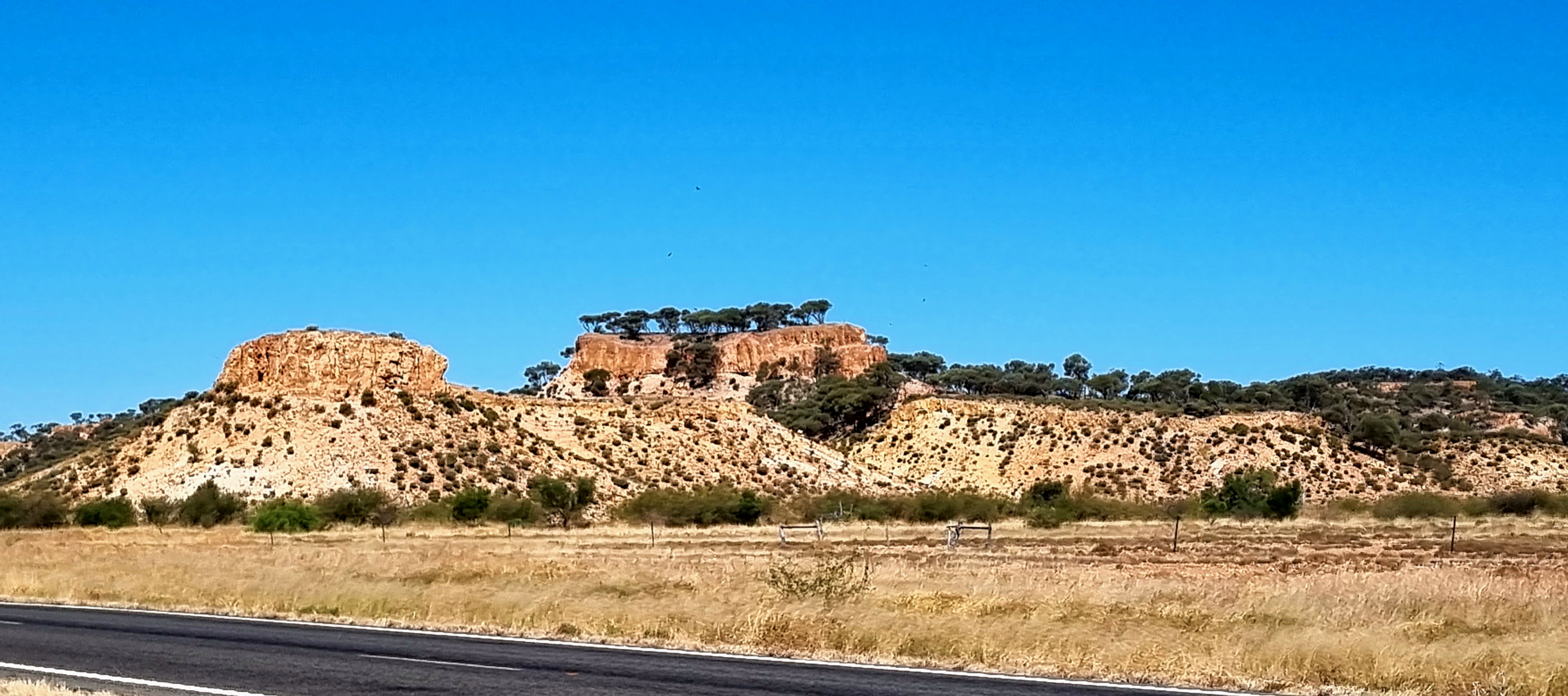 The Blue Heeler Pub is a convenient stop for both travelers and truckies. Kyuna has precisely seven houses, one roadhouse, one police station (we couldn’t work out why either) and one pub. There is a small campground and a large gravel parking area beside the hotel which was full that night with campers and truckies overnighting. Everyone enjoyed the drinks and atmosphere if not the chicken schnitzel and chips which, in my view, came straight from the freezer at Woolworths. Nonetheless (neanmoins) a good night had by all. Tomorrow though is time to continue west. We need to be in Darwin by Saturday.