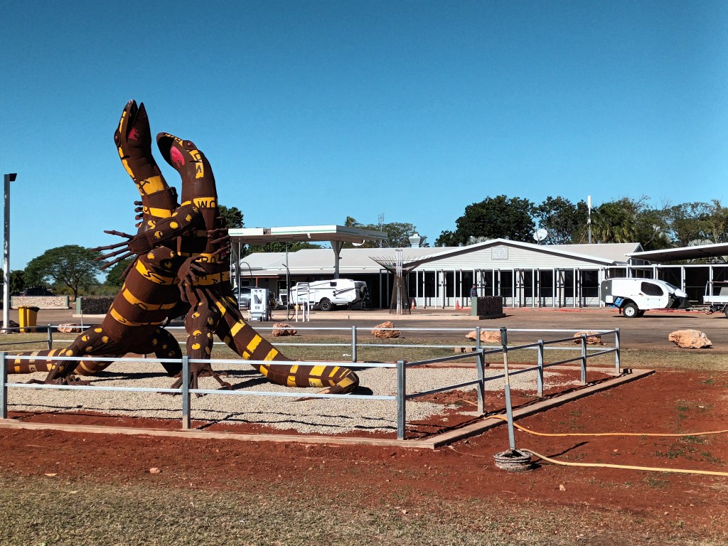 We had planned to stop overnight at WW2 Campsite near Gunpowder just on from Mt Isa. It is so named because of its war memorial, is a free camp with lots of room under nice gumtrees and with a toilet block. We had stopped here before and enjoyed the stay. It is also well situated about a half hour past Mt Isa and before Camooweal near the Queensland/Northern Territory border. The last time we passed here was during covid restrictions and ironically there was a bit of a WW2 feeling as we had to produce our papers at the border to pass on through to Queensland. Although obviously we didn’t have downed airmen smuggled away in the rear of the van. This time though we sailed through at 110 kmph. We usually travel four to five hours a day or around 400 kms. Today we had made such good progress we pushed on into the NT across the Barkly Highway and stopped at the Barkly Roadhouse some 180kms from the intersection with the Stuart Highway known as Three Ways. South goes to Tennant Creek and Alice Springs, north to Darwin and east of course was where we were coming from.